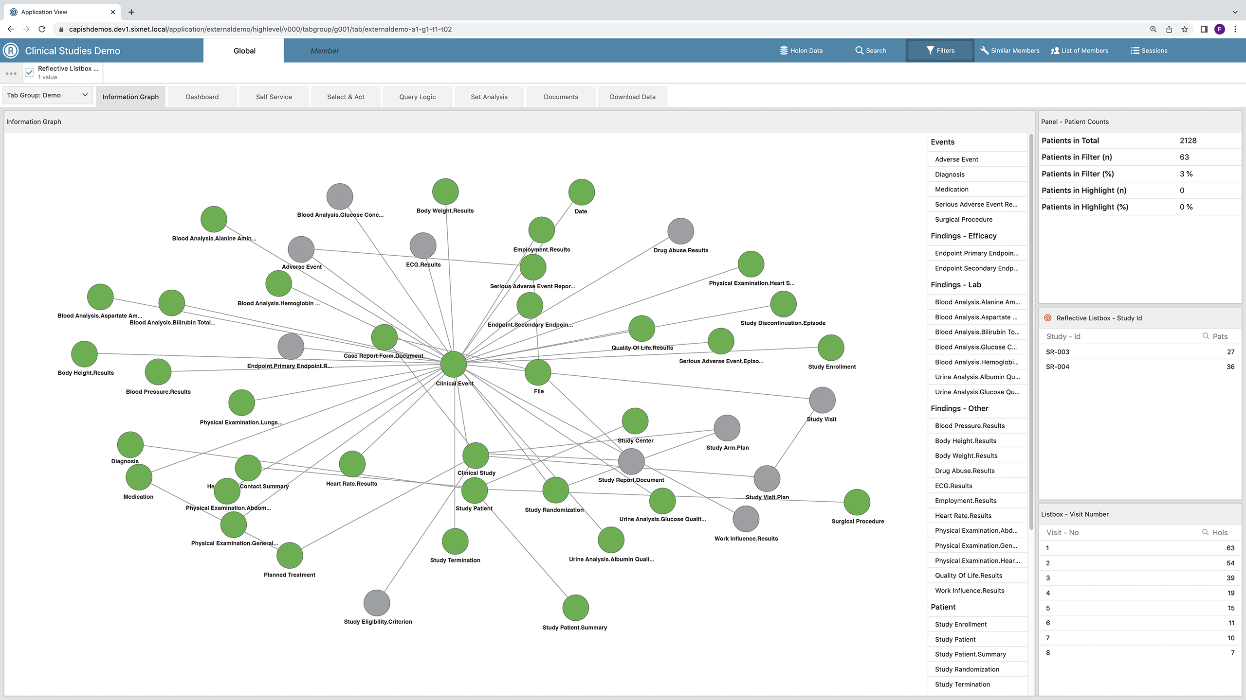 Capish Clinical Data Repository is designed for effective storage and exploration of your completed studies. The features selected are focusing on comparative analysis between study designs, patients, and treatments in the context of efficacy and safety.